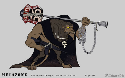 Metazone is a universe of post-apocolyptic animal hybrids living in a brutal world. I was approached to help design characters and a cover illustration for their pitch deck.